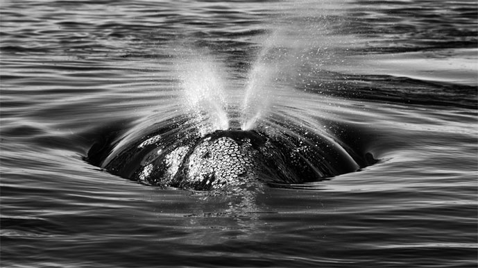 Раздвоенный «фонтан» над дыхательным отверстием южного кита