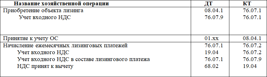 Дт 76.07.1 Кт 76.07.9 учет входного НДС в составе лизингового имущества