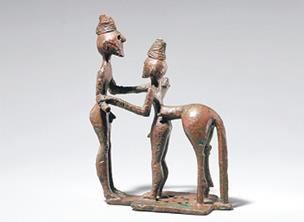 Даже редкие примеры скульптуры – небольшие бронзовые статуэтки – создаются по тому же геометрическому принципу. Мы видим, как далеки они от величайших образцов греческой культуры последующих веков, таких как Венера Милосская и Аполлон Бельведерский.