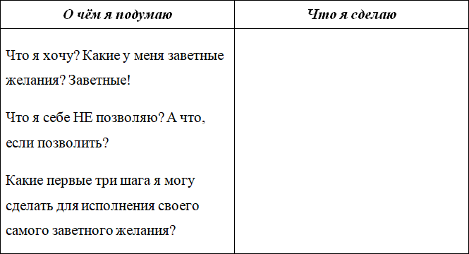 Итак, подумали! Записали! А теперь пора приступать к исполнению. Кстати, заодно можно заняться сбычей мечт дорогих нам людей. Вдруг они, как я свои первые 45 лет жизни, не догадываются, что желания эти выполнить можно, это не так уж и трудно, и что они МОГУТ себе это позволить.