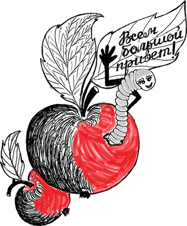 Позже свой первый эскиз червячка, где он вылезает из яблока, я тоже подправила. Вместо червяка в яблоко поместила своего внутреннего критика. Потом посмотрела строго критику в глаза и… уволила его.