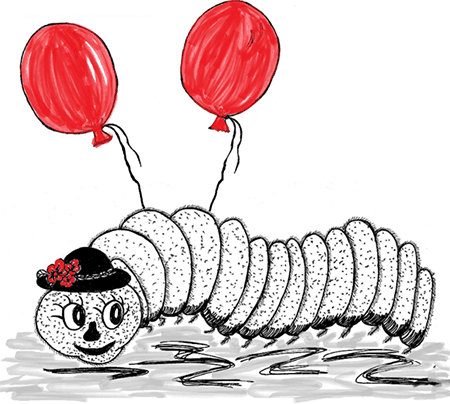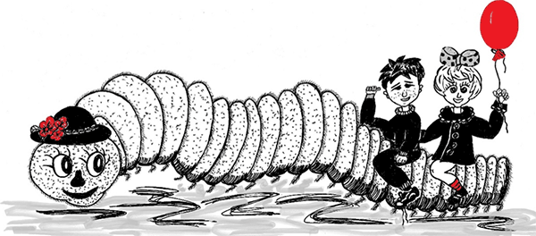 Я добавила в свой рисунок шарики и вдруг засомневалась. Нет, ну зачем ей шарики?! И изобразила червячка по-другому, нарисовав на нём детей. Вот так: