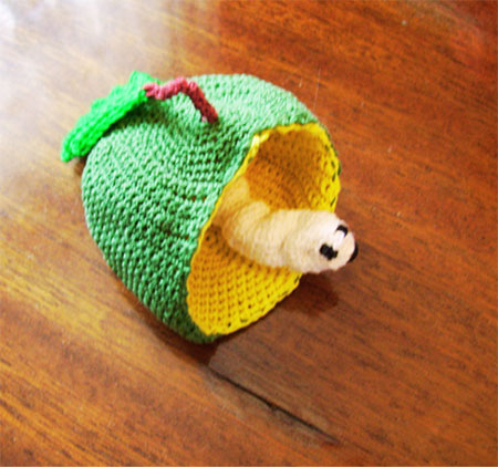 Позже показала мои рисунки подруге. Через некоторое время она принесла мне подарок – вязаное яблоко с червячком внутри.