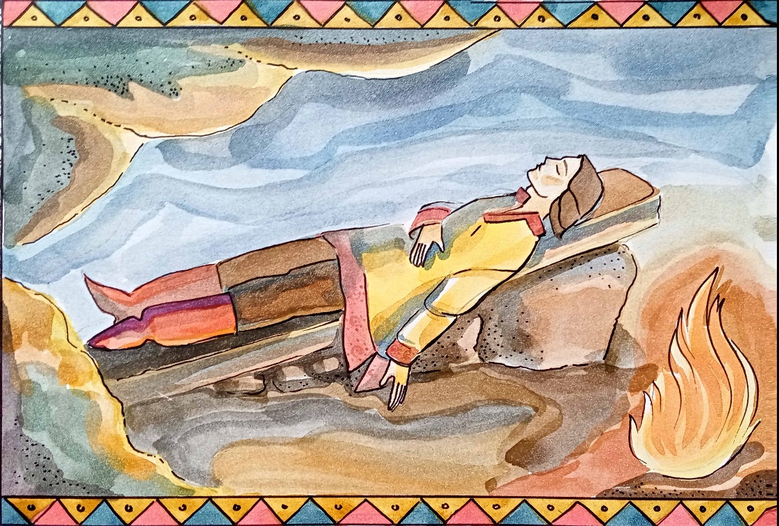 Дорога до горы властителя подземного мира была долгой. Всюду под ногами ей попадались мелкие камни, и девушка постоянно о них спотыкалась, натерев себе кровавые мозоли на ногах. Быстрей идти ей ветер помогал, что подгонял вперед. Сам леший, не иначе, вел девушку вперед.