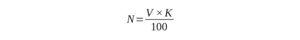 Словесно описание формулы: чтобы узнать количество чистого спирта, нужно объем самогона в литрах умножить на крепость в процентах и разделить на 100. Например, в 2 л крепостью 40% будет 0,8 л чистого спирта (2 × 40 ÷ 100).