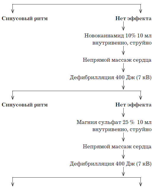 Обеспечение проходимости дыхательных путей, ИВЛ, оксигенация крови, непрямой массаж сердца и дефибрилляция эффективнее медикаментозного лечения и проводятся в первую очередь (до установки катетера в магистральную вену и введения препаратов).
