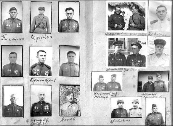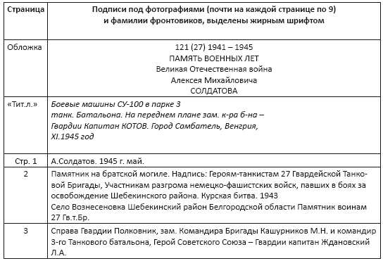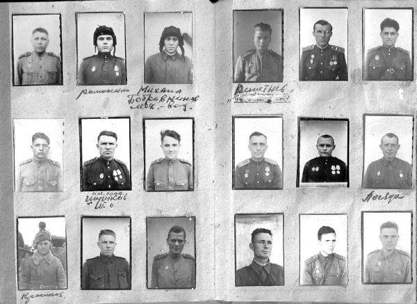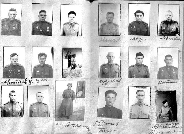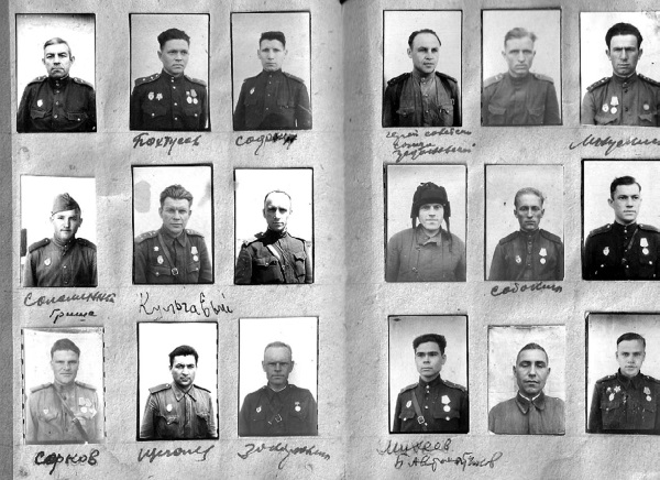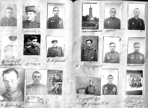 Отец Нины, Алексей Михайлович СОЛДАТОВ (о нём глава в первом томе альманаха), был танкистом. Почерку него был каллиграфический, его назначили писарем. Видимо, это и сыграло свою роль: во имя с охранения образов однополчан в людской памяти, стал собирать фотографии. Жаль, что не успел восстановить все фамилии – 270 фотокарточек фронтовиков! Они дышат историей, свидетели тех памятных событий… Они могут рассказать нам о многом и многих солдатах Великой Отечественной войны. Вглядитесь пристальнее в их лица! Возможно, вы узнаете своих родных? Назовёте их имена и фамилии?