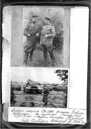 Справа – Гвардии Полковник, Зам. Командира Бригады Кашурников М.Н. и Командир Третьего Танкового батальона, Герой Советского Союза, Гвардии Капитан Ждановский Л.А.
