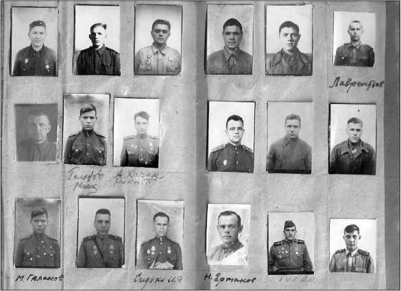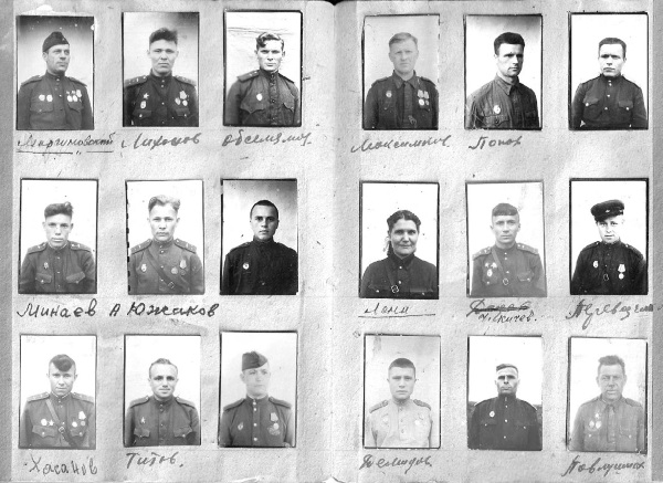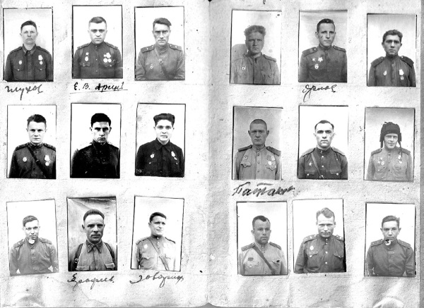 Сегодня можно только догадываться, с какой целью Алексей Солдатов собирал фотографии друзей. Три фотографии в три ряда… Назвал альбомчик «Память военных лет». Под некоторыми фотокарточками фамилии отчётливо написаны – читаются легко. Под другими – едва угадываются. Некоторые из них ещё следует «разгадать»: вся фамилия или её окончание написаны неразборчивы. Многие фамилии отсутствуют. Всего их 145.