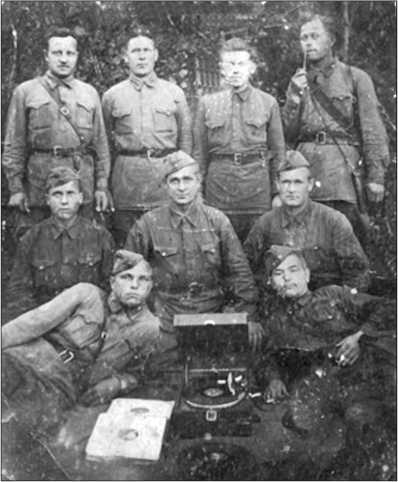 Группа бойцов Ленинградского гарнизона на отдыхе. Стоящий первый справа с трубкой и планшетом – замполит КОЗЛОВ Александр Гаврилович. Впоследствии – первый заместитель Уполномоченного ставки Верховного Главнокомандующего по Ленинграду, обеспечивавшего Ленинградский фронт всем необходимым.