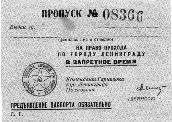 Пропуск на право прохода по городу Ленинграду в запретное время