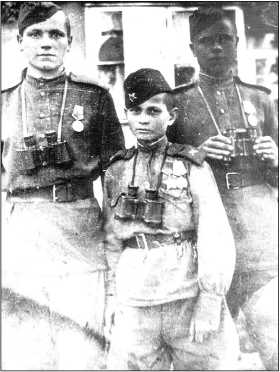 15-летний разведчик Вова Егоров с бойцами своего подразделения