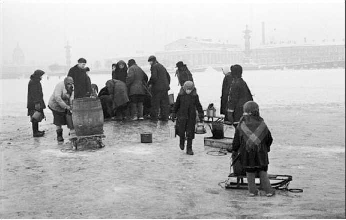 Жители города набирают воду в проруби на Неве. Фото Великой Отечественной войны 1941–1945 гг.
