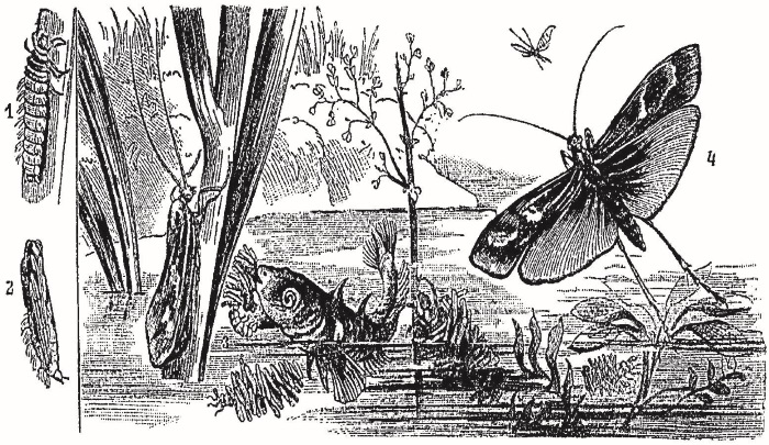 А это, видите ли, личинка веснянки. Веснянки – крылатые насекомые, живущие обыкновенно возле прудов, болот и рек. Личинки же их живут всегда в воде.