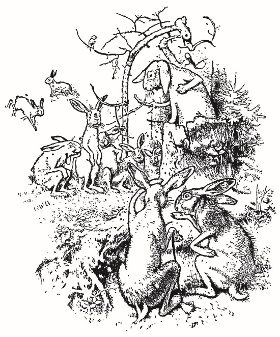 А заячьему житью ничуть не лучше. Всё так же забижают их и волки, и лисицы, и собаки. Жалуются вожаку, а он им в ответ речь: