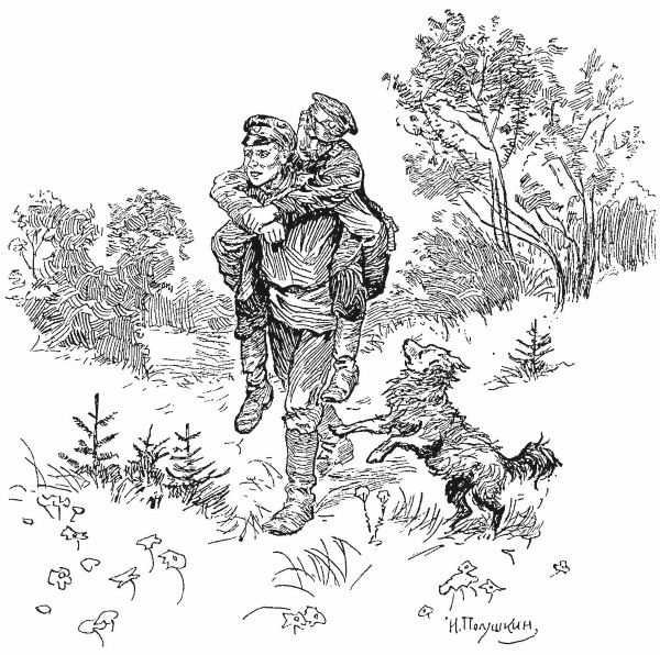 – Чуешь, миляга? – сказал ему солдат. – Нет твоего хозяина. Там он остался! – и солдат махнул рукой в сторону неприятеля.