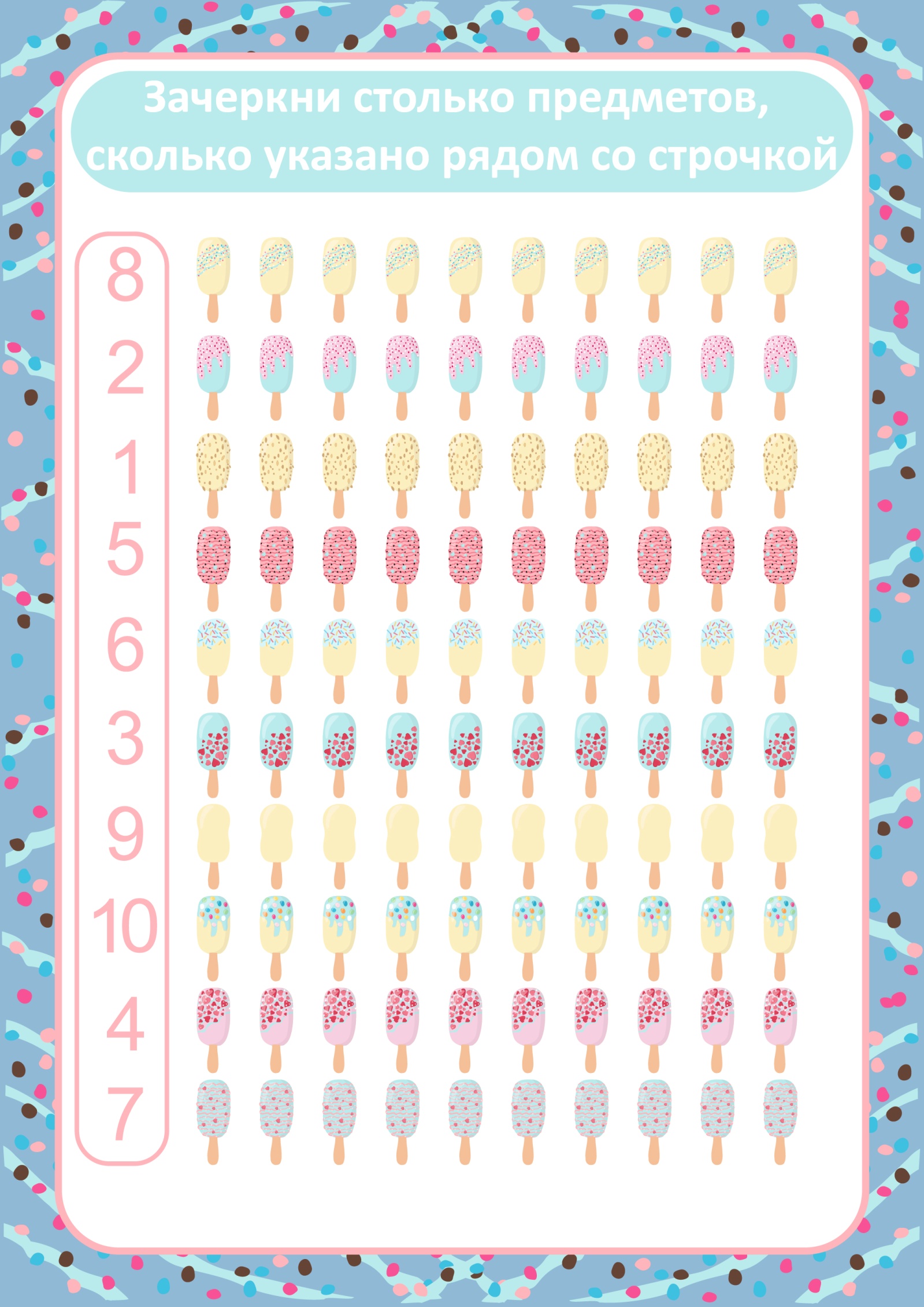 Зачеркни столько предметов, сколько указано рядом со строчкой