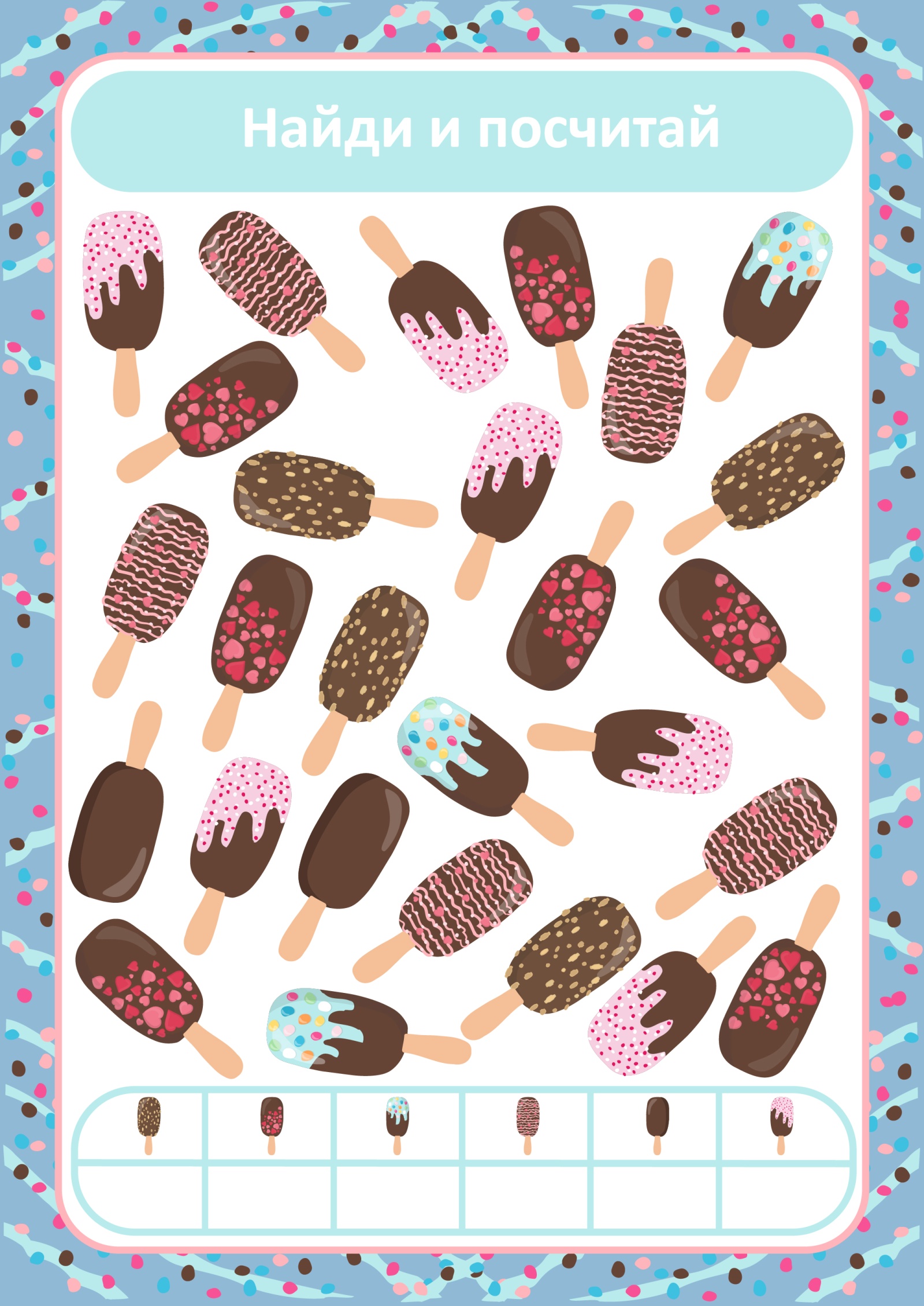 Найди похожий пломбир на палочке и почитай его количество. Внизу напиши это число.