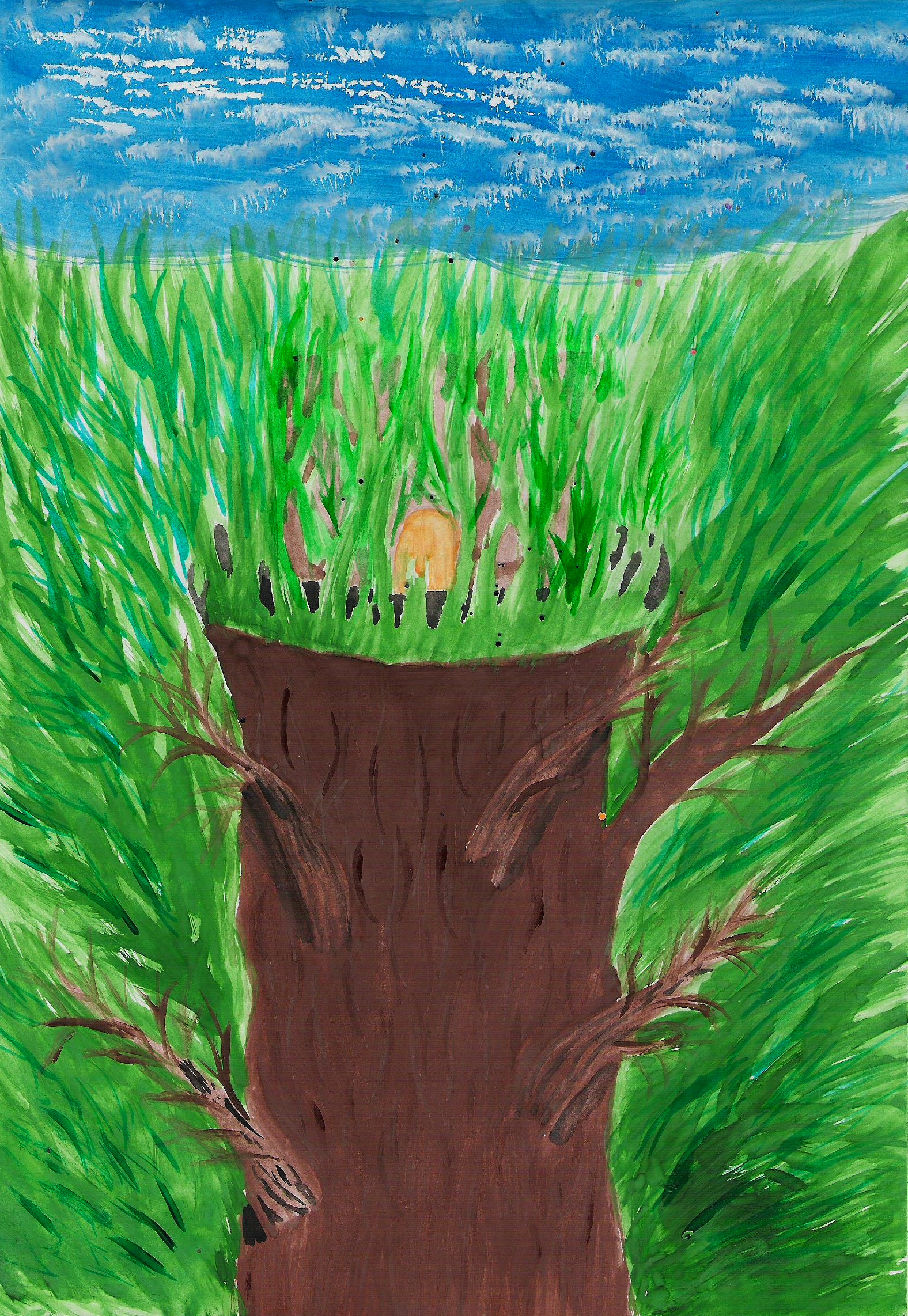 Путники следовали за голубыми цветами и пока ни разу не остановились. Вдруг они услышали всхлипывания. Они были до того явственными, что стало понятно одно – им не почудилось. Всхлипывания доносились в том месте, где росло дерево.
