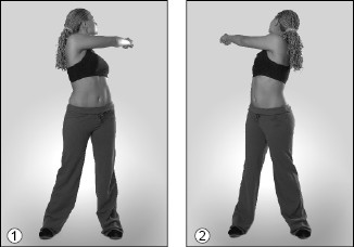 Внимание! Во время поворотов старайтесь удерживать согнутые в локтях руки в исходном положении перед грудью; удерживайте бедра направленными вперед, то есть повороты выполняйте только верхней частью корпуса; во время движения направляйте взгляд назад.