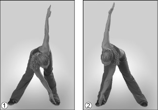 Станьте прямо, ноги на расстоянии 1,5 ширины плеч, руки выпрямлены в стороны. Выполните поочередные наклоны к правой и левой ноге, каждый раз касаясь стоп руками: наклон – касание правой рукой левой стопы – возврат в исходное положение и так далее. Темп выполнения – быстрый.