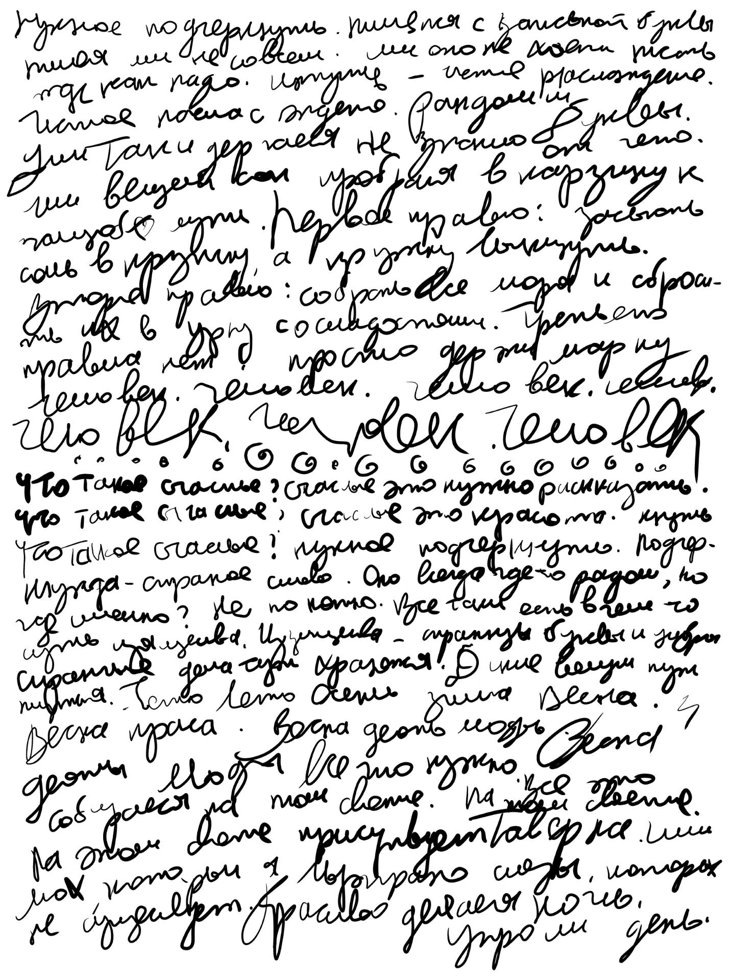 5 марта 2021 года. Спасибо моему умению. Я могу писать с закрытым глазами. Это дается мне легко и просто. Просто. Делая данное движение, я не думаю о нем, оно само идет. Все это перекресток на уме. Длань короткая, мутотень длинная. Точка, вся морось забирает на себя внимание. Очень робкое движение, оно все меркнет перед очарованием хрусталя. Писать не глядя, письмо – это деятельное оттачивание навыка.