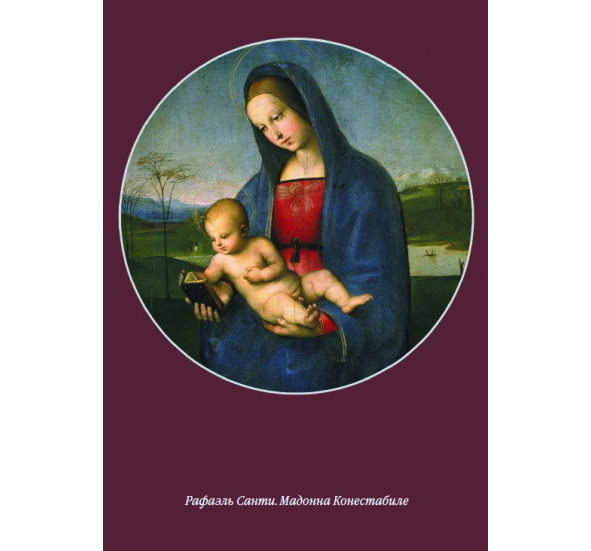 Мадонна Конестабиле в небесном тондо. Лазурь туманна. Златой телесный. Спокойно алый. И юность гордо скромна. Всё предначертано, всё просто, всё извечно, всё безгранично. И золото и синь, как свет лампады, безмятежны. Безмятежны, как детская любовь к маме, держащей тебя на руках. Тондо – открытая вселенная, нет-нет Земля, мгновение на Земле, Творцом увиденное, Творцом же созданное. И материнство, как начало веры. И мальчик1 Рафаэль писал мадонну, и Бог водил его рукой.