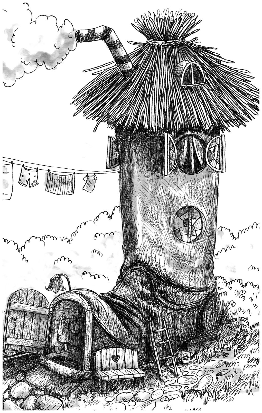 На месте, где когда-то был носок сапога, теперь стояла дверь, сверху голенище укрывала соломенная крыша, а по бокам были аккуратно прогрызены окна, украшенные разноцветными стёклышками. Но главное, что превращало сапог в дом, – это печь с торчащей из крыши трубой.