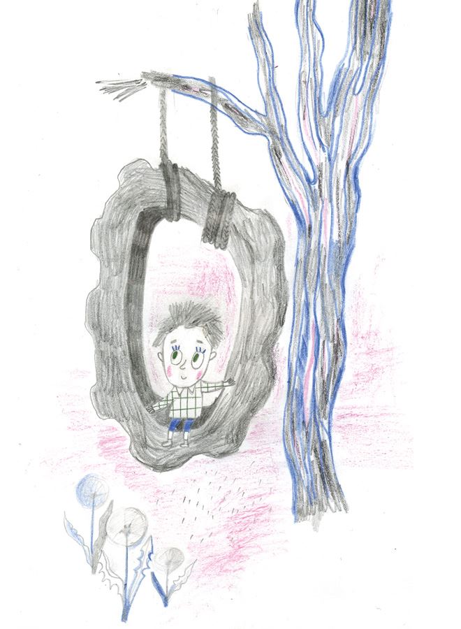 Долго злиться Берта не умела. Она нашла моток веревки и вернулась во двор. Там обвязала шину и потащила за собой в одно тайное место, где росло большое дерево с подходящей крепкой веткой.