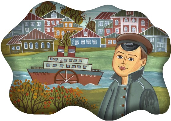 Слышно было, как работают машины этого богатыря, вращая огромные колеса по бокам судна, которые загребали плицами воду и сообщали пароходу движение. На носу его и на капитанской рубке развевались флаги. Всюду сияли золотом и темным полированным деревом поручни и ручки, дым весело валил из белой трубы, матросы в красивых форменках крепили канатами пароход к причалу и подавали трап-лестницу.