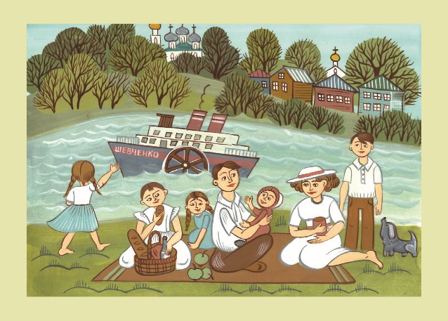 Вот всей семьей сидят они на берегу сверкающей солнечными бликами реки, дымит самовар, на расстеленных одеялах нежатся под солнцем ребятня и взрослые.