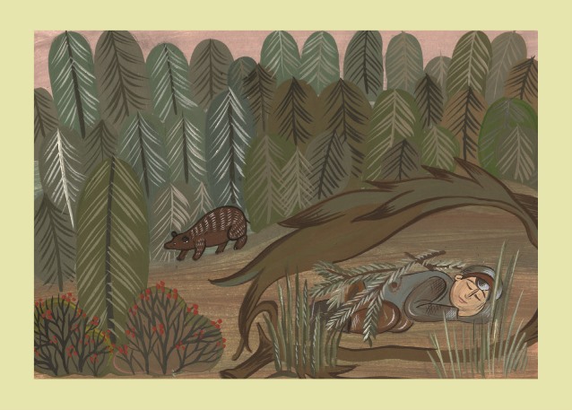 Мальчик поднял глаза и увидел на краю моховой поляны огромную, вывернутую с корнями, ель, под которой можно было спрятаться. Дрожа всем телом, он побежал к поверженной ели, наломал густых еловых лап, частью которых он устелил дно своего прибежища, а другими ветками укрылся под корнями могучего дерева. Стало тихо и даже тепло. Мальчик свернулся калачиком, согрелся собственным дыханием и скоро забылся тревожным сном.
