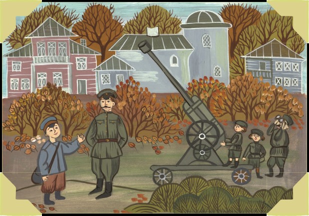 – Ну, что ж, – сказала девушка. – Проходи. Видишь землянку, дым из трубы идет? Там командир нашей зенитной батареи – капитан Петров.