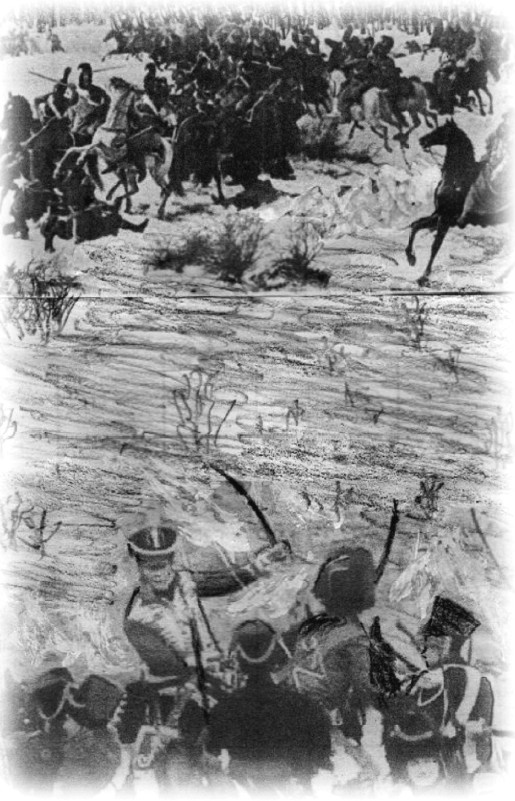 – Егеря! К бою! – Моруа выхватил из ножен саблю, – За мной егеря! Вперёд! За императора! За Францию! – и первым направил своего арабского скакуна навстречу казакам.