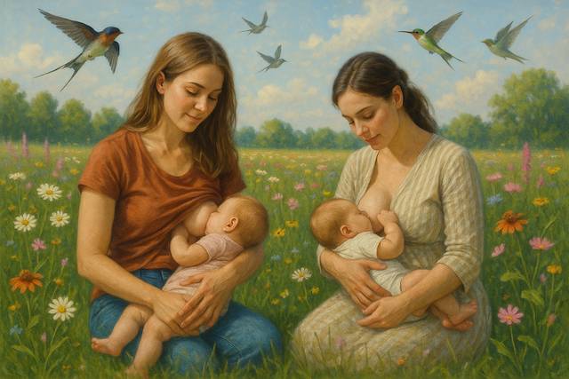 Маленькие крохотки передавались из рук в руки матерей. Многие фотографировались с ними , бережно держа на своих руках. Все присутствующие радовались и смотрели с умилением на эти чудеса природы. Новоиспеченная мать брали одного ребенка, оголяла свою грудь и кормила. Потом ребенка одна мать передавала другой и вторая мать также оголяла грудь и кормила.