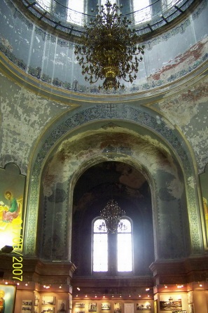 На обратном пути побывали в русской православной церкви. К сожалению, русским этот храм святой Софии был только снаружи. Внутри церковь превращена в этнографический музей города Харбина. Все стены, на которых еще кое-где сохранились следы от фресок, увешаны стендами с фотографиями старого Харбина. Есть макет старого города и макеты других русских церквей, не доживших до настоящего времени.
