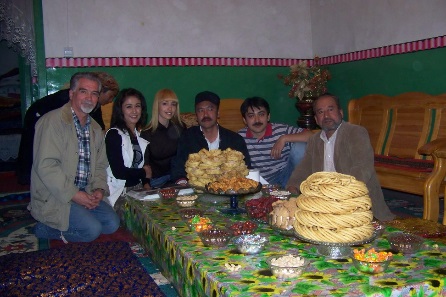 Прием проходил по той же программе, что и вчера, но только дом у друга был немного богаче и отделан внутри очень красиво. Старый актер Махмуд объяснил мне, что в Синьцзяне всегда так: снаружи дом, спрятанный за высоким дувалом, выглядит неказисто, даже бедно и грязно, потому что постоянно дуют ветры, поднимающие песок и пыль, которые покрывают пылью все и вся, зато внутри всегда очень чисто и красиво. Но вскоре я выяснил, что хозяин этого двора работает в местном управлении животноводства, так что удивляться богатому убранству не стоило.