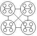 Число клаттеров СИС равно числу носителей в ее клаттере (рис. 8). Гармонической иерархической сетью (ГИС) ранга R назовем такую иерархическую сеть, каждым клаттером которой является СИС ранга R, а число этих клаттеров равно двойке в некоторой степени: 2n, n = 1, 2… R – 1. Всякая СИС является так же и ГИС.