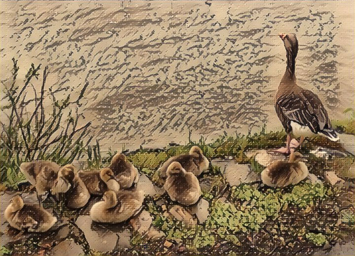Сообразив, что это новая атака гусыни, он поборол появившейся лёгкий страх и решил повторить её же манёвр: отбежал чуть в сторону, развернулся и опять ринулся на гусыню, хлопая в ладоши.