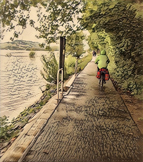 Путешественники покинули велопарковку и поехали вдоль реки в сторону города Бинген-на-Рейне.