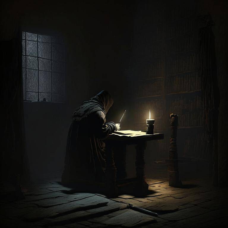Каморка, куда завели мужчину, оказалась тёмной, грязной и совсем маленькой. Возле одинокого стола было только два стула по обе стороны, и на одном из них сидел худой писарь в коричневом реглане. Один его глаз косил куда-то в сторону, под носом висела капля влаги. Писарь периодически начинал натужно кашлять, утирая затем рот рукавом.