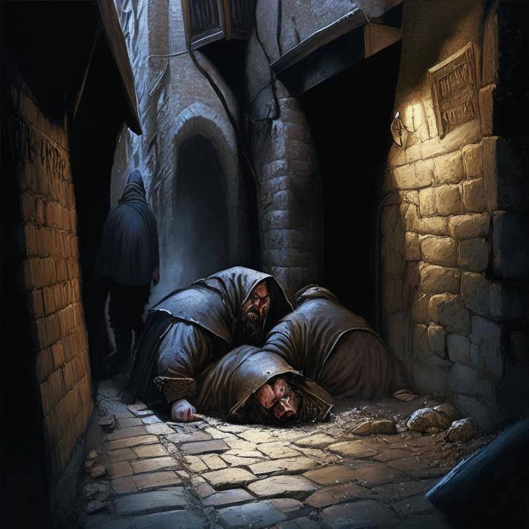 Была она неплоха собою, не успев окончательно опуститься на самое дно профессии, и покуда ещё активно бултыхалась у поверхности зловонного болота разврата. Но годы шли, и трясина доступности тела уже сказывалась на облике – в заигрывающе вульгарной речи, в яркой, кричащей подаче себя, предпочтениях в ничего не скрывающей одежде. Пистос оглядел блудницу с длинных под поднятым подолом ног до вольно распущенных волос. Та посчитала внимательный взгляд согласием и, схватив под руку, потащила за угол. Пистос и не сопротивлялся. Он уже оценил распутницу. И теперь шёл легко, не мешая заводить себя в темноту подворотни. Когда шум улицы стал едва слышен в этом лабиринте из каменных проулков, из ближайшей тени выделились три устрашающего вида фигуры.