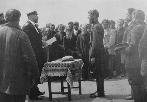 П. А. Столыпин принимает рапорт от волостного старшины в селе Пристанном Саратовской губернии (1904 год)
