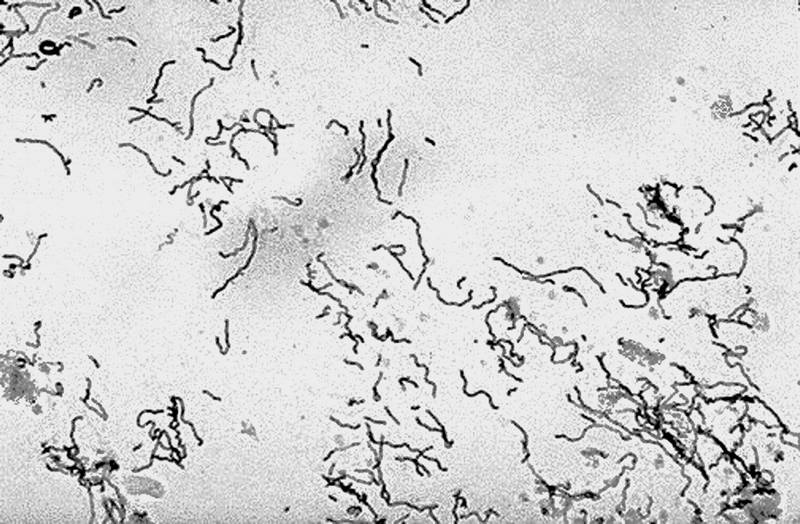Рис. 3. Нитчатая бактерия Сфиротилус натанс (часть оболочки пуста)