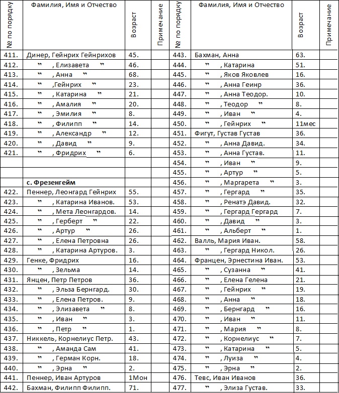 Ново-Привальное и Фрезенгейм 411 – 477