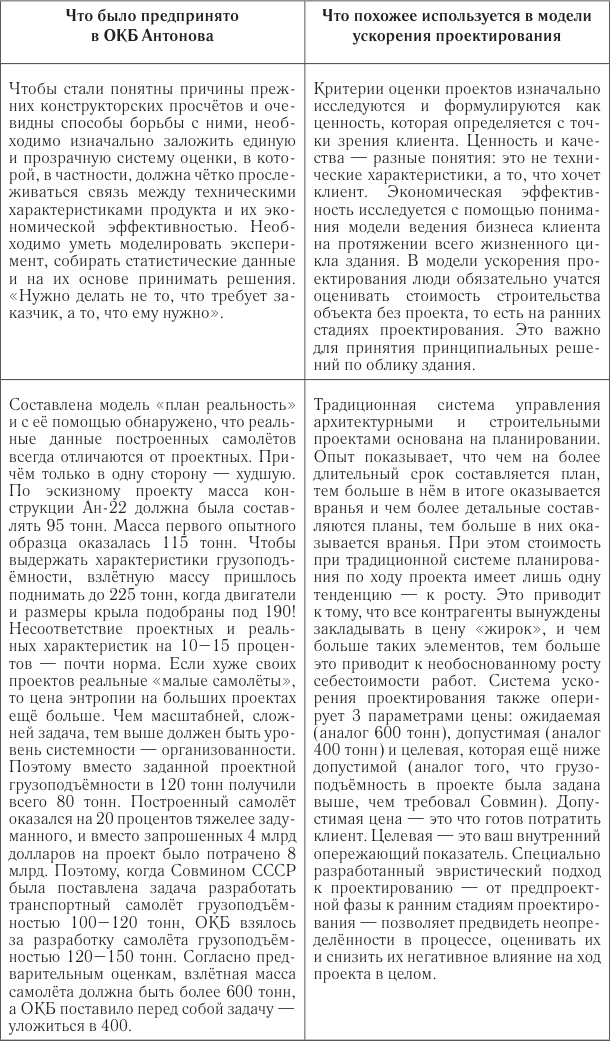 В этой главе я хочу, с одной стороны, показать, что связь модели «lean design» с отечественной историей проектирования на самом деле гораздо сильнее, чем может показаться на первый взгляд: это не очередная чужеродная, импортная модель, придуманная американцами, как большинство современных методик в области менеджмента. Более того, в отношении модели ускорения проектирования и строительства мы можем выступать не только импортёрами, но и экспортёрами знаний.