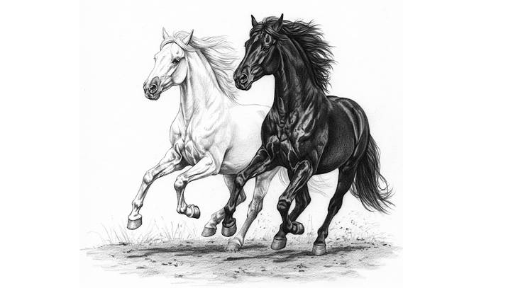 Император решил подстраховаться и так же отправил выбрать скакуна своего придворного конюха. В итоге он привел великолепного внешним видом, мускулистого черного жеребца.