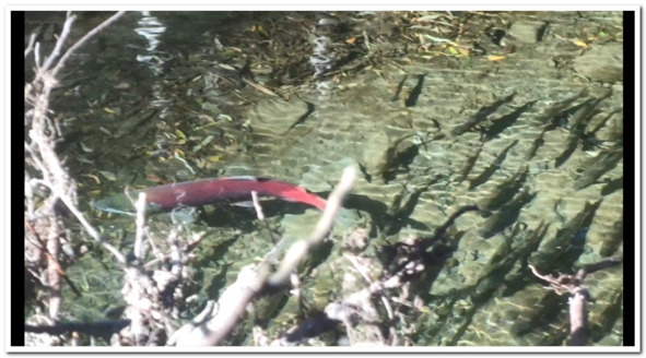 Небольшая яма, прикрытая выворотнем, вальяжно проплывала мимо меня, и я не делал из этого трагедии – сколько уж миновал их, чтобы сокрушаться об очередной пройденной? А солнце тем временем стояло ровно в лоб мне и течению реки, подсвечивая все рыбьи разборки в таких ямах, где относительно спокойная вода, без всяких турбулентностей, демонстрировала все до мельчайших деталей дна. И вдруг странный контраст кинулся мне во все глаза. Зрение мое слишком прекрасно, чтобы я ему не доверял, поэтому слегка поменял прямокурсность движения, обратясь всем телом к ямке. Глубины в ней по колено в самом глубоком месте, в размахе ширины может метра два, в длину все пять-шесть. Но внутри нее ходил-похаживал рубин. Алый как заря на рассвете перед тайфуном. «Сима что-ли» – прошла телеграфной искрой мысль, ну и тут же заглохла. Вся сима уже давно почила в бозе, в переводе с церковнославянского – уснула в боге, ну то есть умерла. Косточки ее лежали по всем верхам всех местных ручьев по всем сторонам всех хребтов. Да и обозвать рубином все же симу в любом случае не получилось бы, не настолько красна ее одежа, и редко выдерживает один тон по всему телу. А этот местный житель имел целиком ярко-красно-алую окраску, кроме головы, темно-зеленой такой. Кто ты, зверь? Не потребовалось мне покупать диплом водного биолога, чтобы вынести свой вердикт. Это нерка. 99 процентов моих уверенностей говорили за это. Немного позже я провел консультацию, и она подтвердила – это нерка. Данный вид лосося обладает мощнейшим хоумингом, то есть домашности. Всегда возвращается к месту рождения. Однако, как и у людей, есть те, кто не выносит скуки домашнего очага. Им нужно уйти за горизонт, открыть неоткрытые дали, дерзнуть преодолеть бремя походов, одиночества и непонимания своих сограждан. И умерев в одиночестве сказать перед смертью – что их жизнь была напоена путешествиями, подвигами и сражениями.