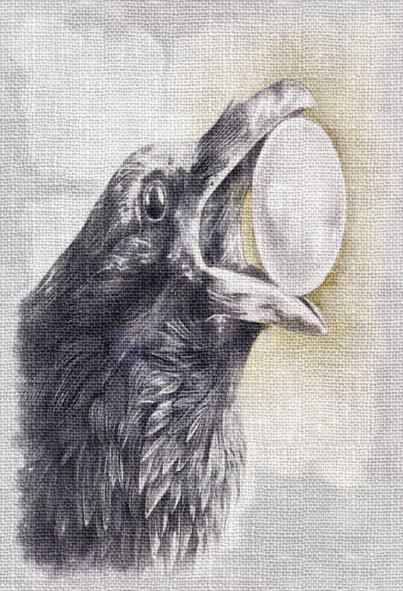 Ранним утром, когда Бусинка только проснулась и умылась чистой росинкой, внезапно поднялся сильный ветер и унёс крепкий кленовый лист, под которым столько времени жила Бусинка. Что теперь делать, где спрятаться от непогоды и птиц она не знала, и очень испугалась. И, в этот момент она услышала шорох старой листвы и увидела большую птицу, которая искала себе пропитание. Птица подходила всё ближе, и Бусинке некуда было спрятаться. В страхе она зажмурила глаза и прошептала – будь что будет. Повертев головой, и наклоняя голову то в одну сторону то в другую, будто размышляя, птица схватила Бусинку своим большим клювом, и несколько раз подпрыгнув на земле, поднялась в небо.