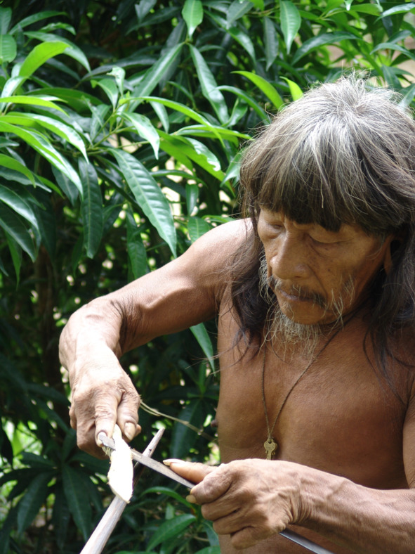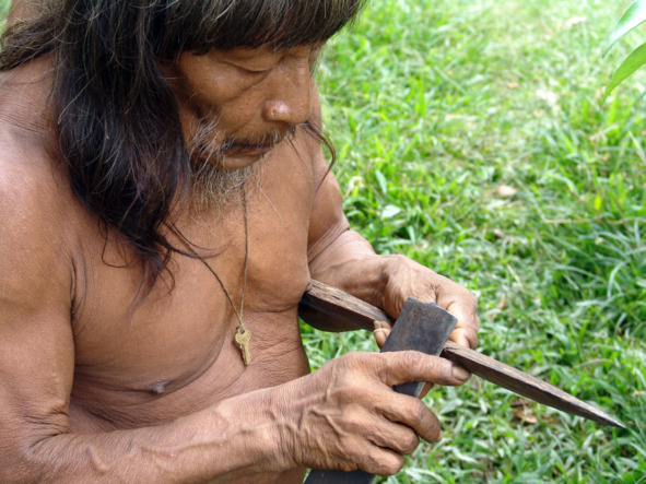 Ауа, также являющийся одним из старейших мужчин Бамено и братом Кемпери, делает для себя новое копье из твердой, как железо, древесины персиковой пальмы. Предварительно обработанную заготовку он выпрямляет над пышущими жаром углями костра. Потом он выносит ее из хижины и, укрепив между двух стволов, начинает обрабатывать, придавая ей нужную форму при помощи куска острого мачете, зажатого в расщепленном куске дерева.
